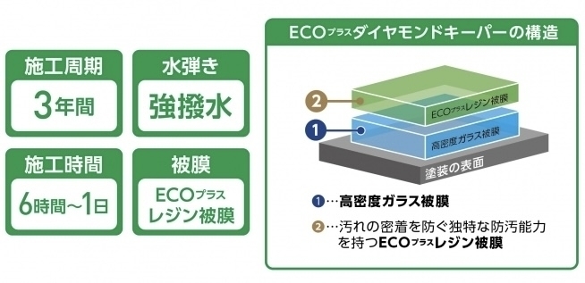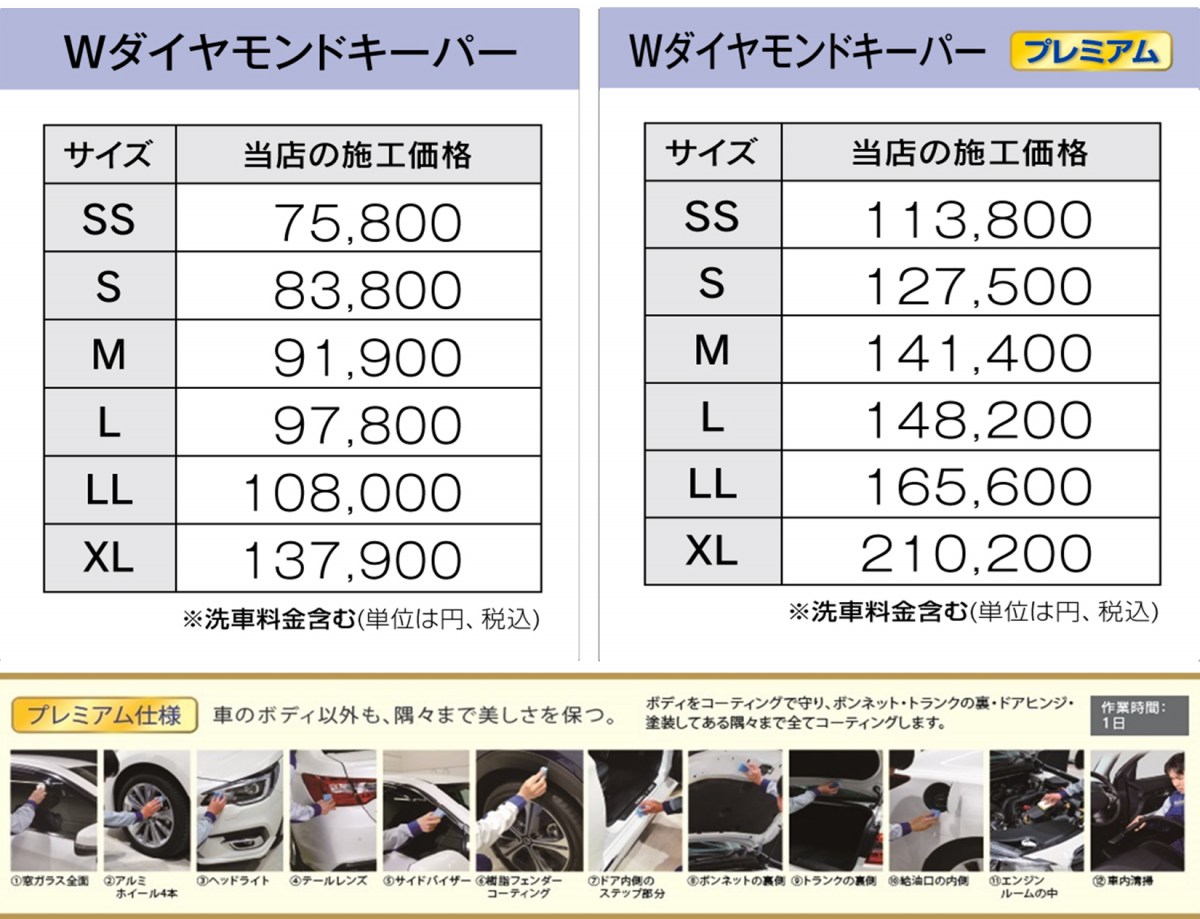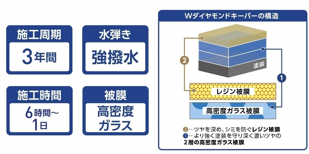 最高級のツヤ・撥水性のダブルダイヤモンドキーパー 3年間洗車だけノーメンテナンス