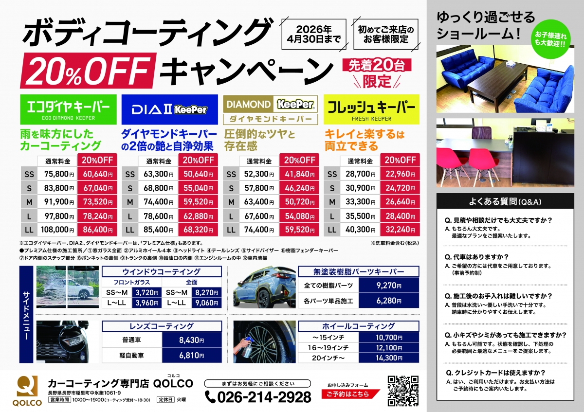 対象ボディコーティング20%OFF