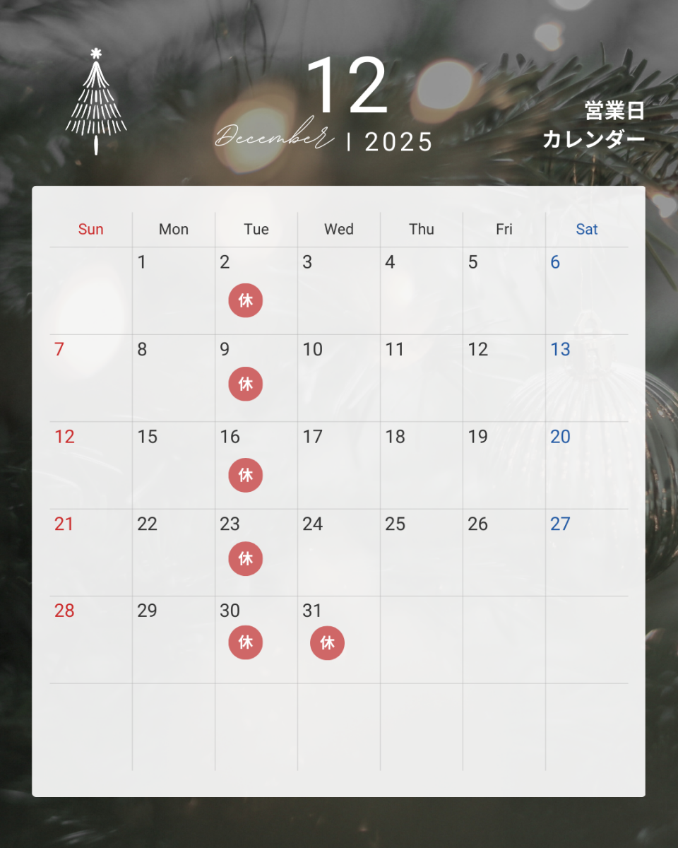 12月 営業日のお知らせ(年末年始の休業12/30~1/4)