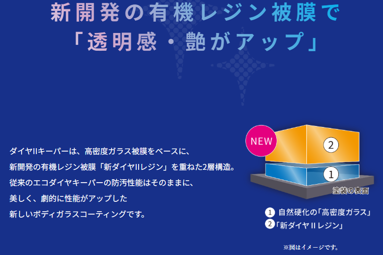 ダイヤモンドキーパーが築いた信頼の上に、最新ケミカルが生み出すダイヤモンドキーパーの2倍の艶(当社比)と