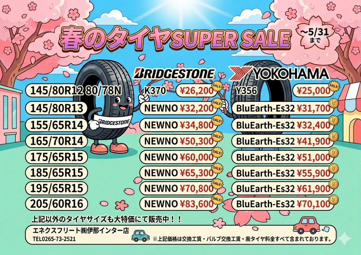 ※オイル交換.タイヤ脱着作業は予約制となります。