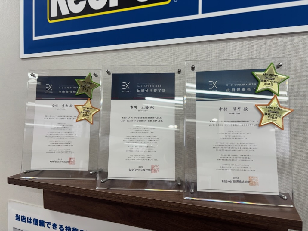 このキーパープロショップ認定証は、その技術でお客様の求める