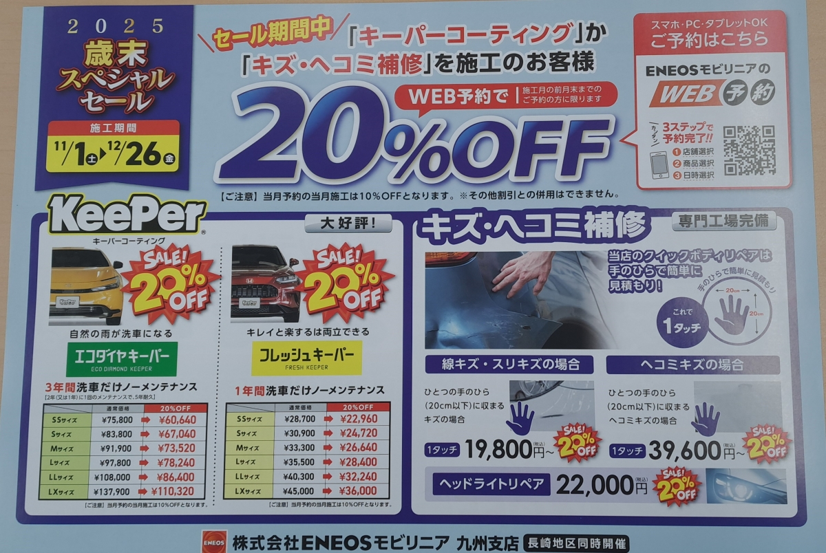 今年もやってきました。歳末スペシャルセール!!本年度最後のキレイは当店にお任せください!!!