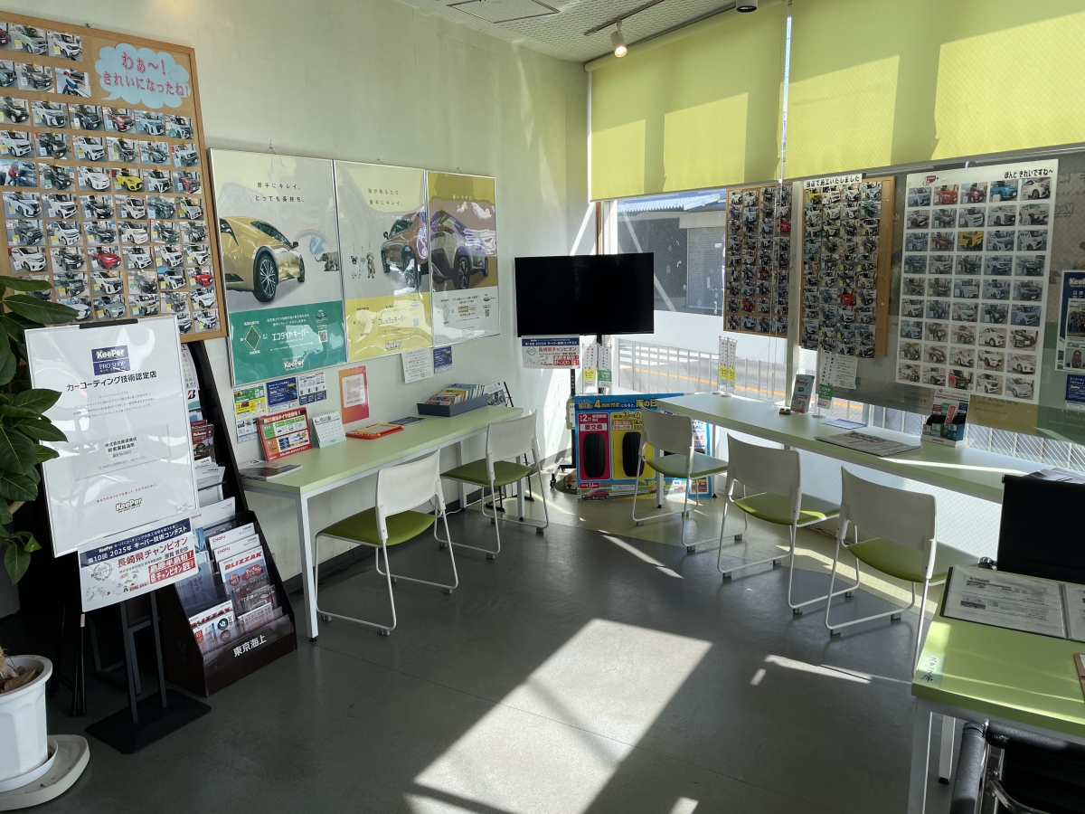 ゆっくりくつろげるショールームには、コーティングを施工して頂いたお客様のお車の写真を掲示しております!