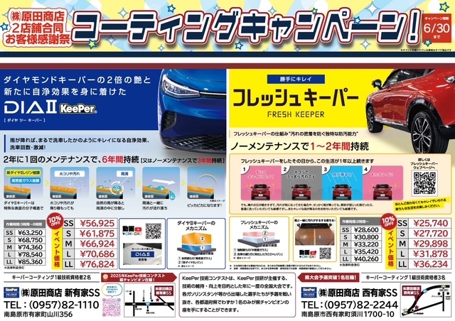 当店一押しの新商品「ダイヤⅡキーパー」や「フレッシュキーパー」が期間限定でお得に施工できます☆