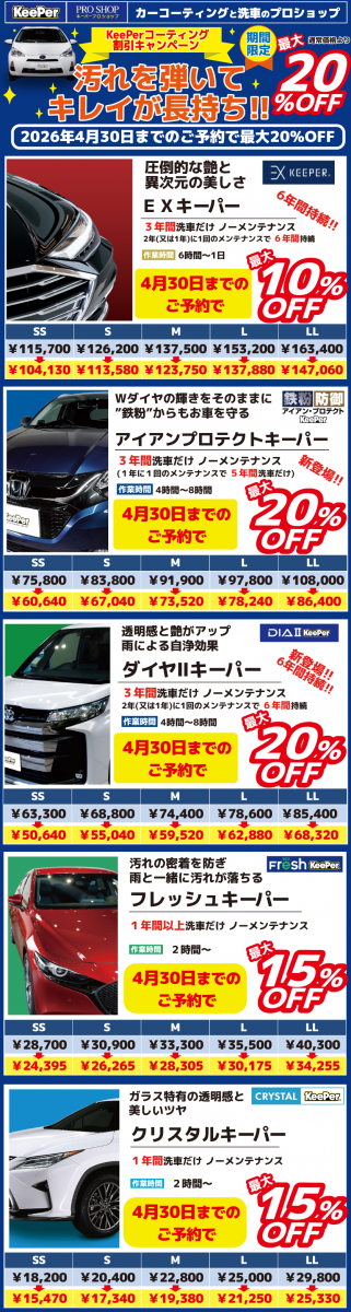 ★Web割引でキーパーコーティングが店頭価格より5%OFF♪
