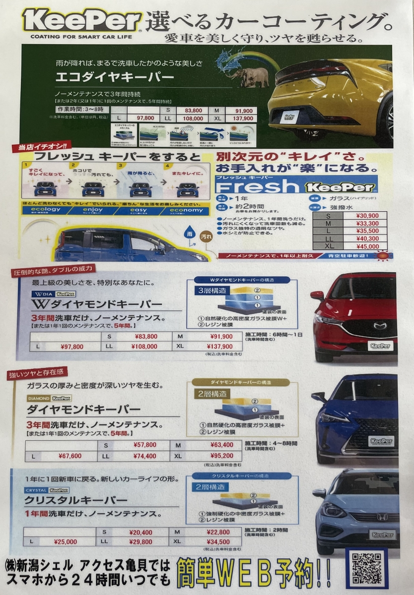 コーティング施工価格も乗せてありますので、ご確認下さい。