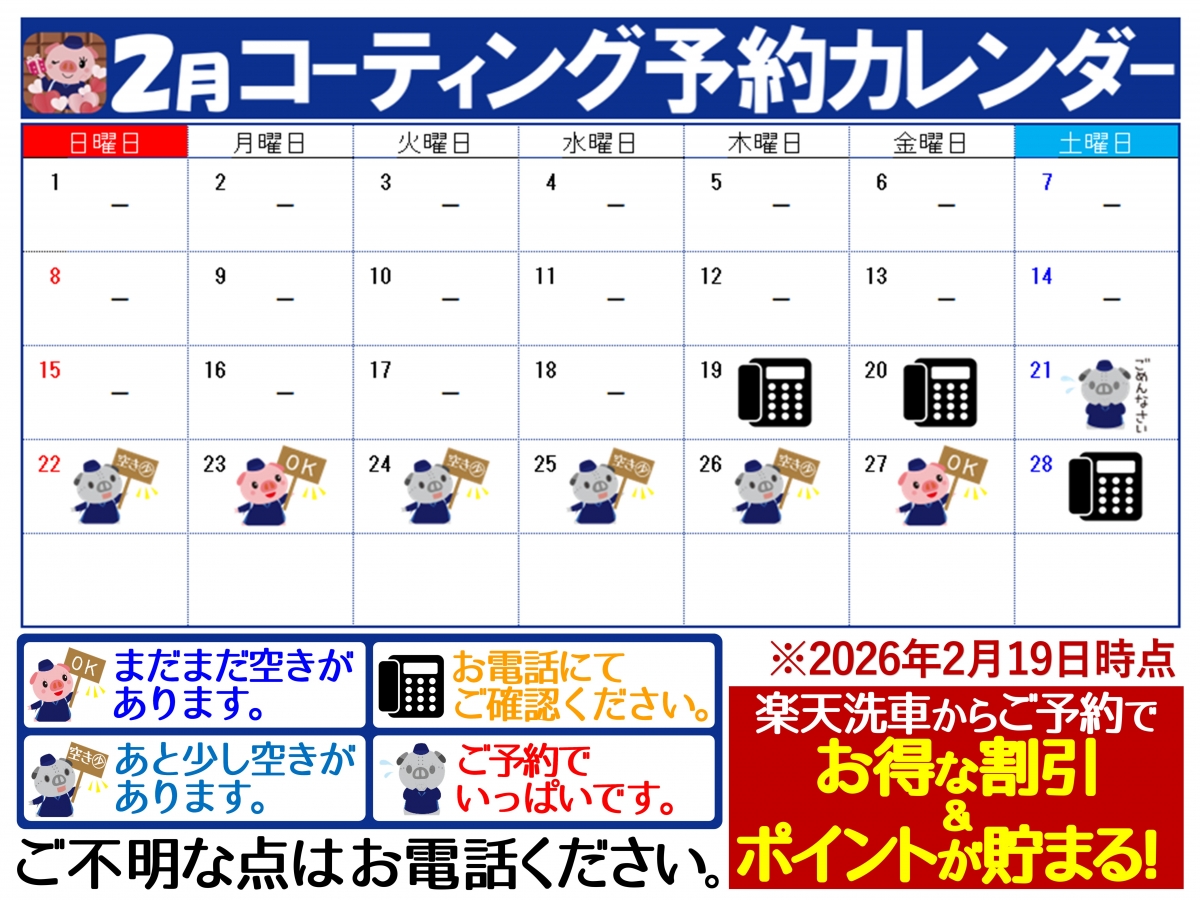 - 洗車・コーティング営業時間