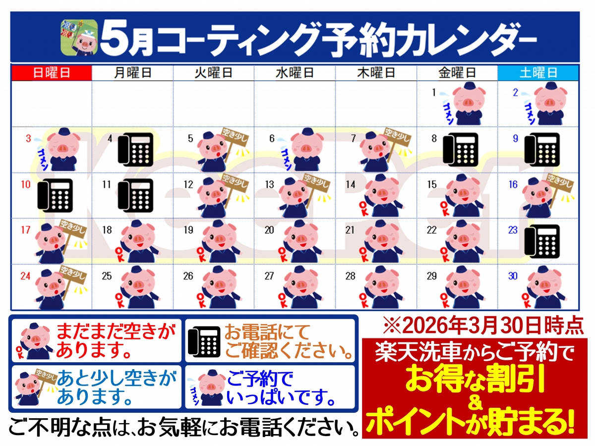 2026年3月30日時点の予約の空き状況をお知らせします。...