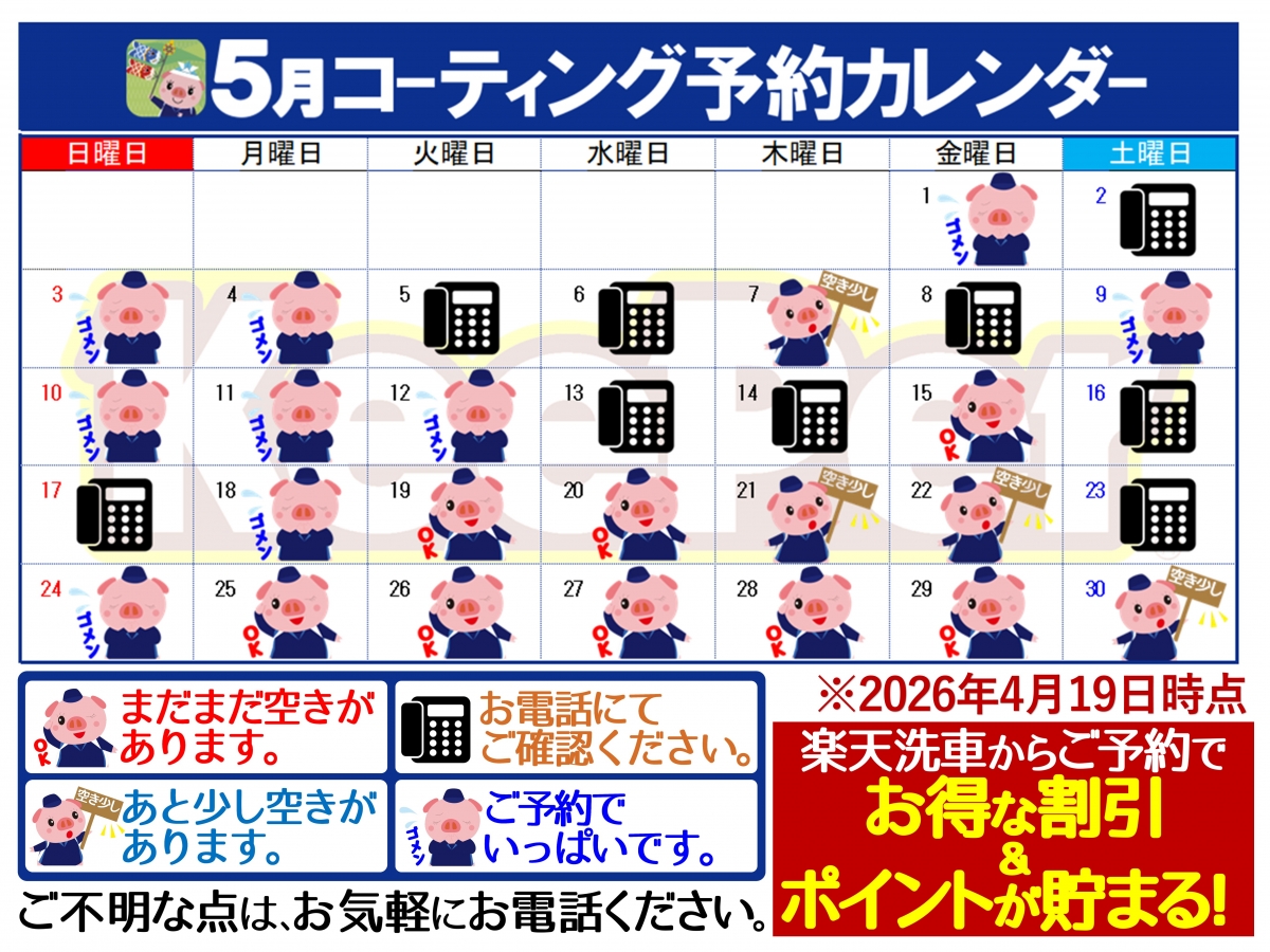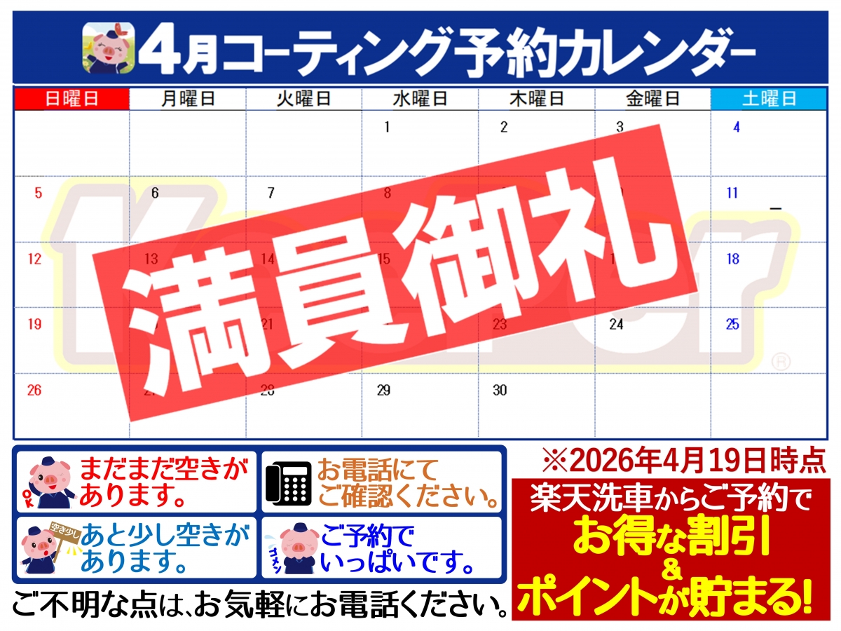 2026年4月19日時点の予約の空き状況をお知らせします。...