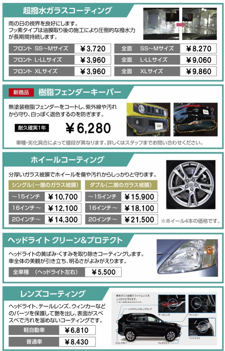 ※ひどすぎるものに関しましてはコーティング前にご連絡をする場合がございます。