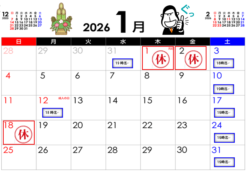 - 平日 7:30~21:00 土曜日7:30~19:00 日曜日・祝日8:00~17:00
