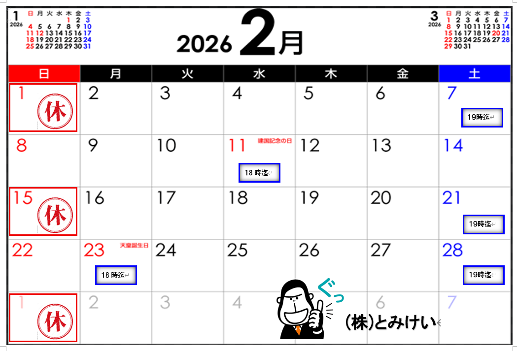 - 定休日