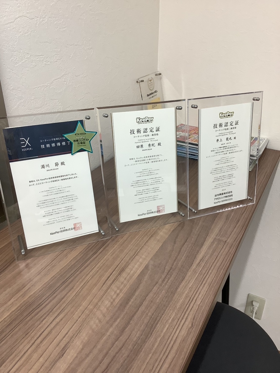 当店ではキーパーコーティング技術資格が常時在籍しております。
