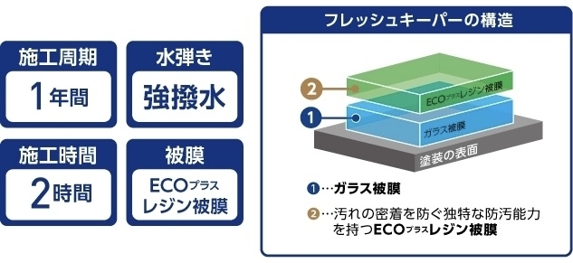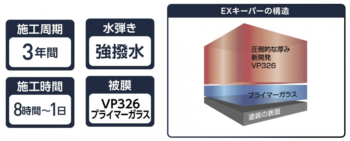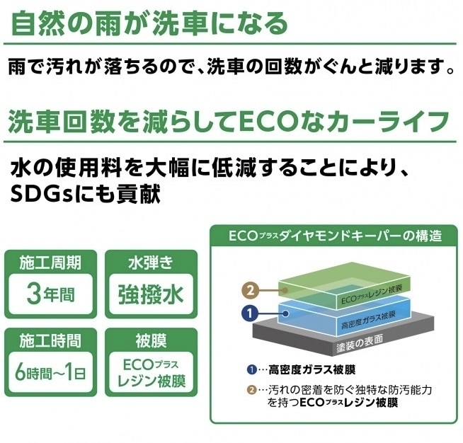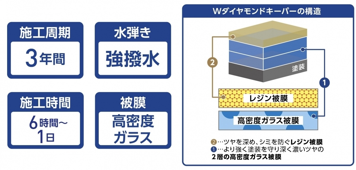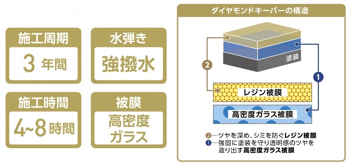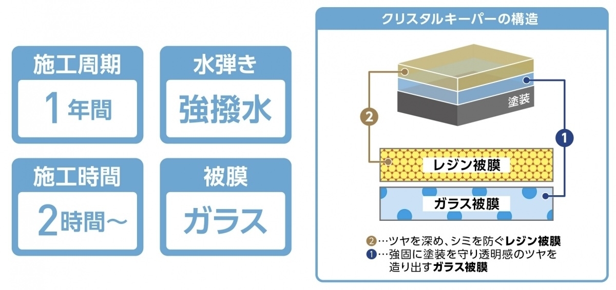塗装面の酸化を防止し、紫外線の影響を少なくするためには塗装面に透明被膜を塗布することが有効です。