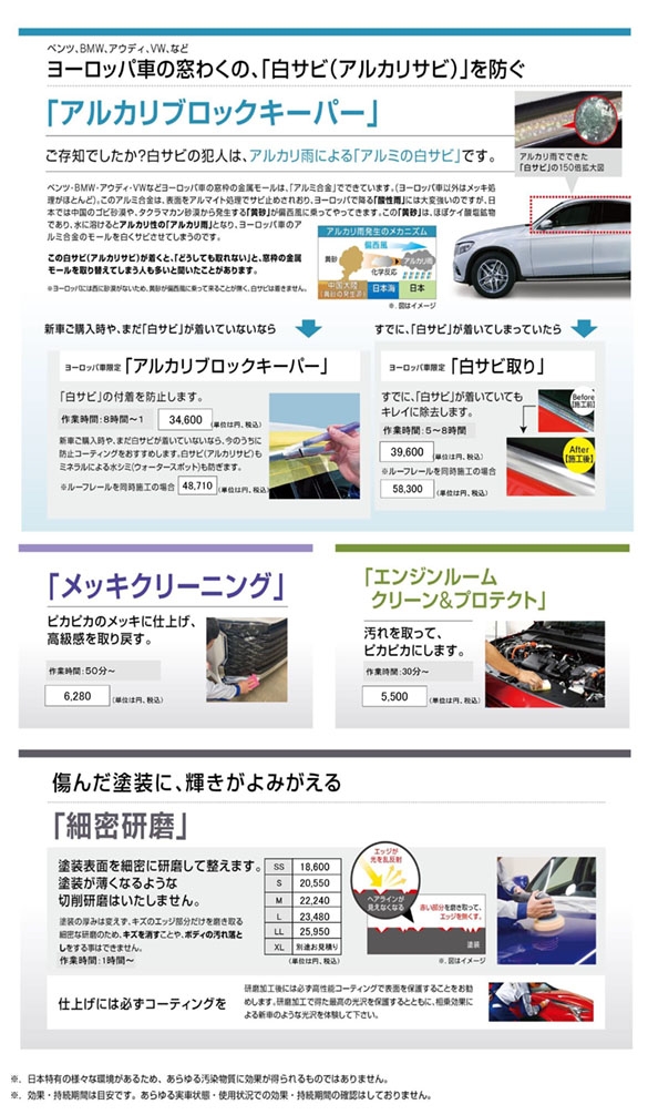 当店は、洗車から下地処理、研磨作業、カーコーティング(ボディガラス系コーティング、ポリマーコーティング)の専門店です。