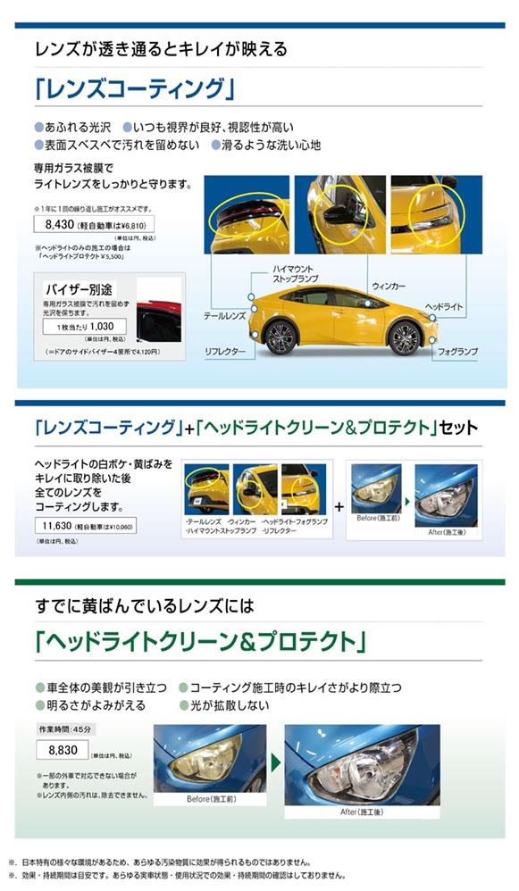 新車納車時、中古、経年車リフレッシュ時、車検時も