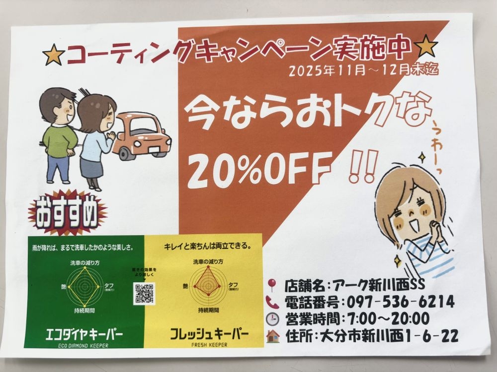 アーク新川西SSホームページをご覧いただきありがとうこざいます。