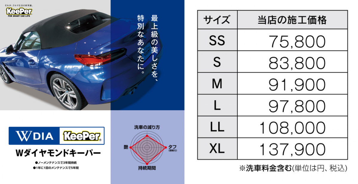 Wダイヤモンドキーパー・愛車に最上級の美しさを、、、