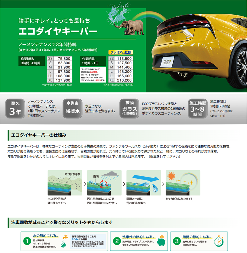 雨が降っても水玉コロコロ効果で汚れが固着しにくく洗車回数も減らせます。