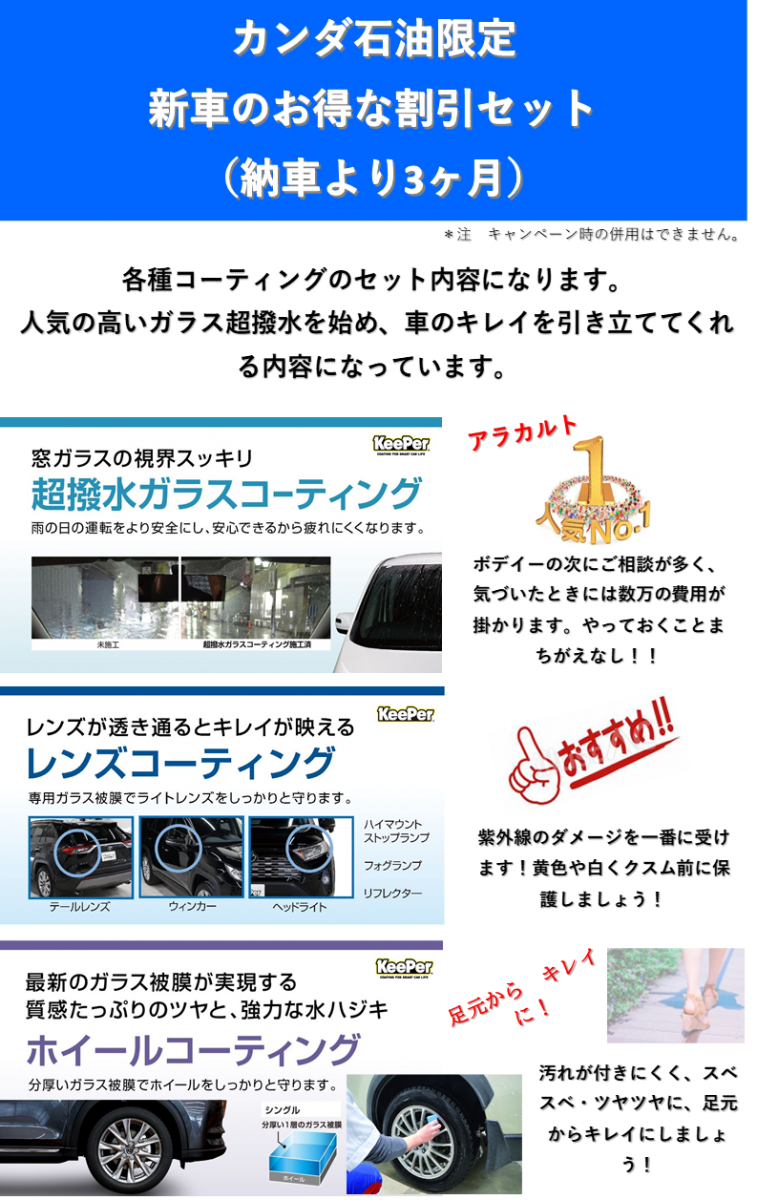 新車限定(納車より3ヶ月)割引 ~お得にキレイに~