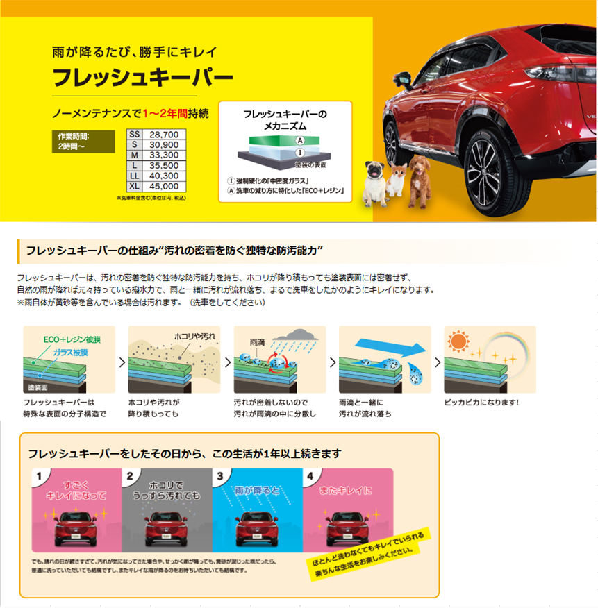 汚れを弾いて、キレイが続く。当店一押しコーティング