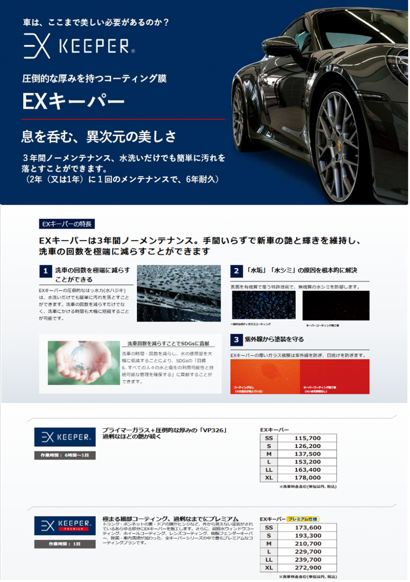 愛車を長くキレイに!キーパーコーティングにお任せください。