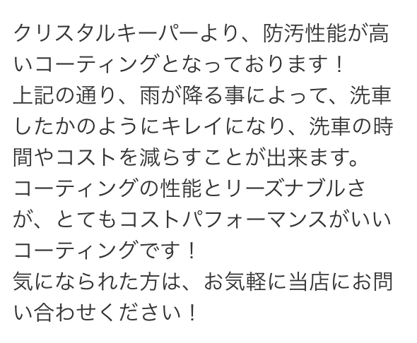 キーパーコーティングは私達プロにお任せください! 受注・引き渡しまで責任を持って行います。