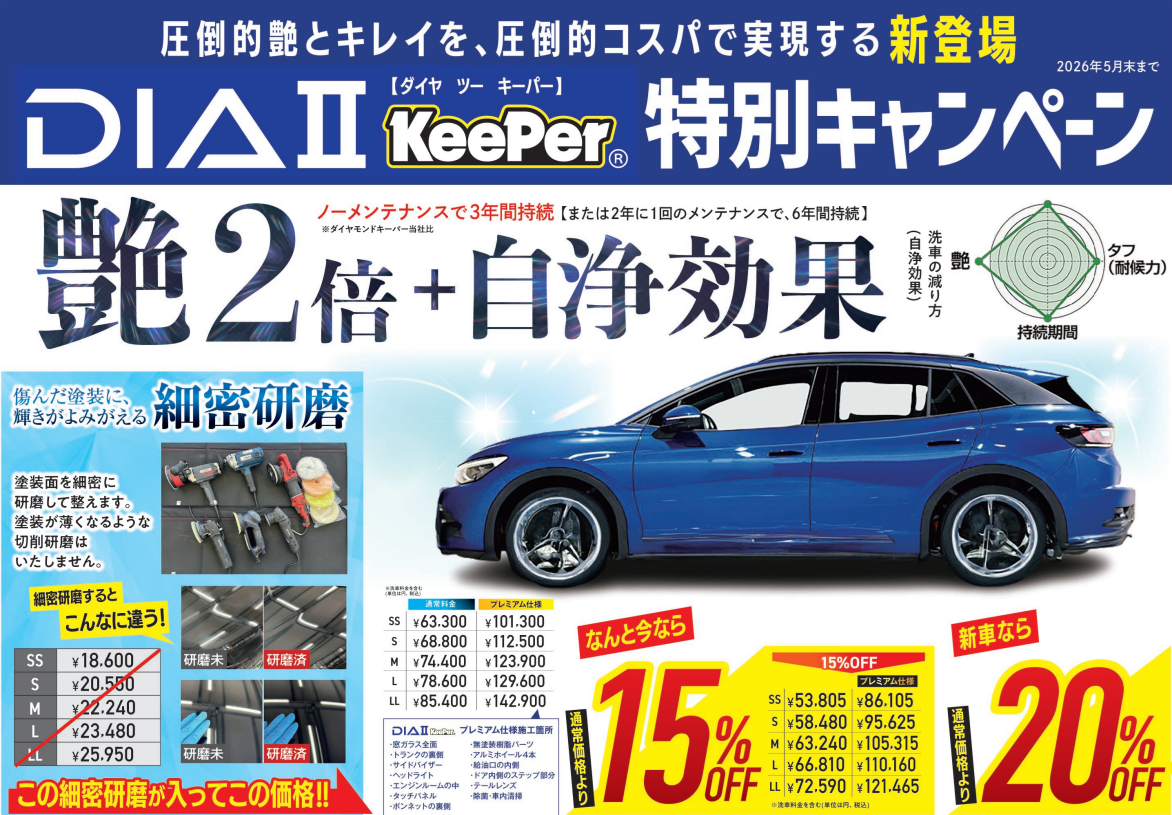 ダイヤモンドキーパーの2倍の艶と、新たに自浄効果を身に着けたダイヤⅡキーパーが新登場!