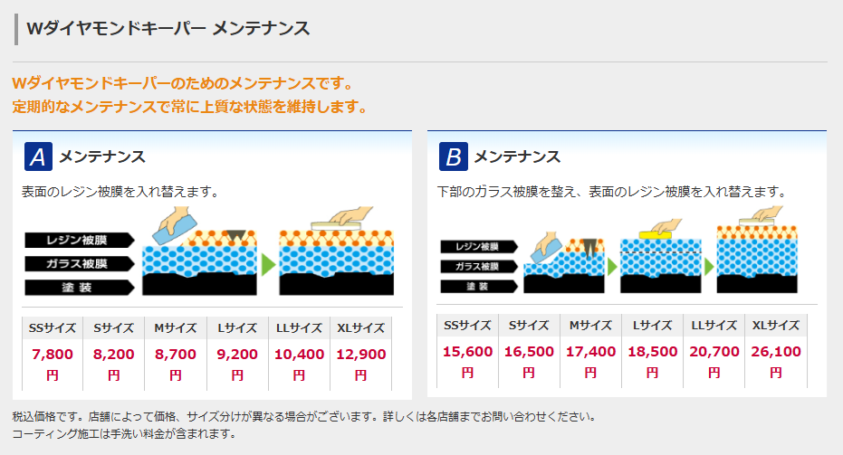 ※コーティングは営業時間の都合上、