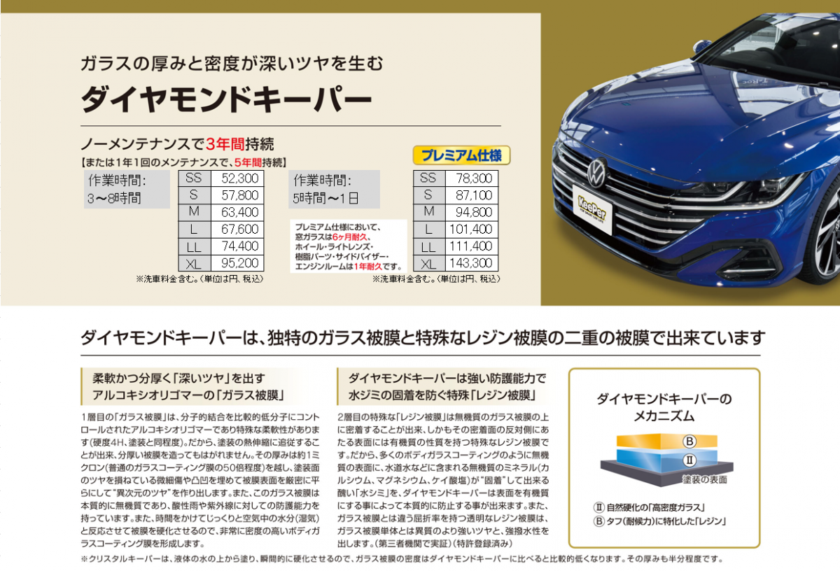他店でキーパーを施工されたことのあるお客様は、来店時に施工証明書をご提示いただければ キーパー施工価格でご案内させていただきます(但し各コーティングの耐久期間内に限ります)