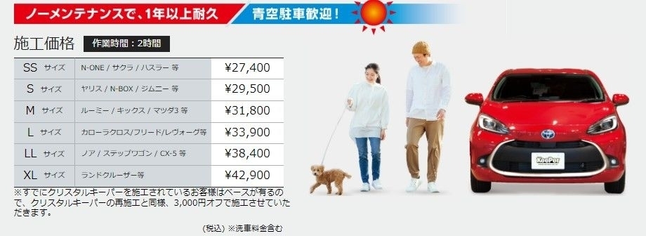 ※効果・持続期間は目安です。あらゆる実車状態・使用状況での効果・持続期間の確認はしておりません。