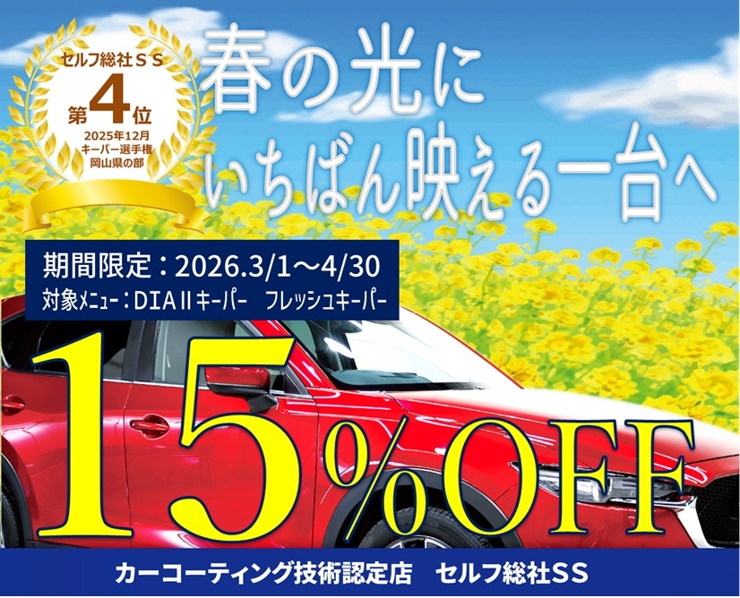 なんと「KeePerコーティング 15%OFF」となります!!!