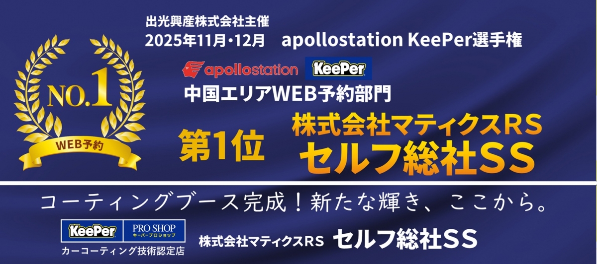 「2025年11・12月apollostation KeePer選手権 中国エリアWEB予約部門」 第1位