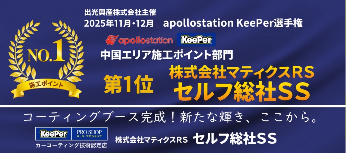 ・2025年11・12月apollostation KeePer選手権 中国エリア施工ポイント部門 第1位