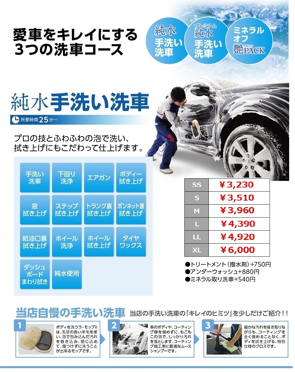 ・↑画像タッチすると手洗い洗車のサイズ別価格表が見れまーす♪