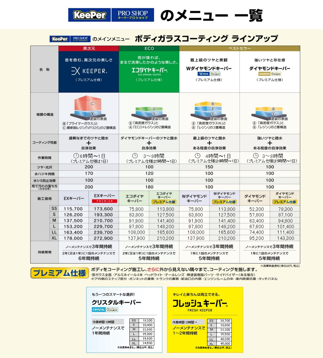 ・EXキーパーは新車用ボディーコーティング、納車後1ヶ月以内、走行距離で1000キロ以内が新車の定義となっています。