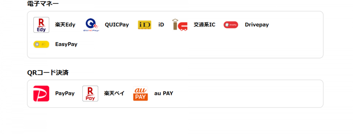 各種クレジットカード・電子マネー・QR決済ご利用いただけます。