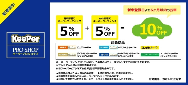 新車登録から6か月以内なら新車割引5%OFF! 一番キレイな状態から、さらに「キレイ」を!