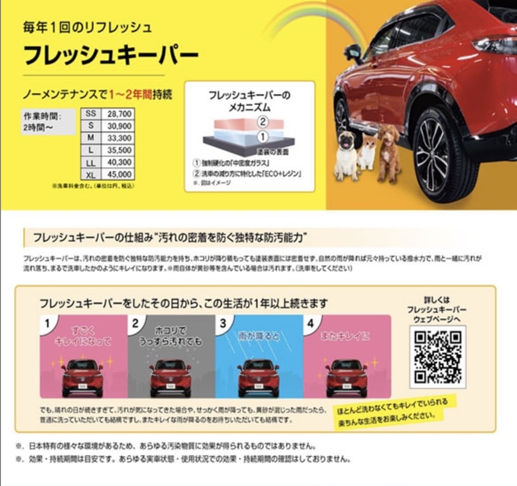 雨を味方にしたフレッシュキーパー!!『施工後は自然の雨も洗車に』
