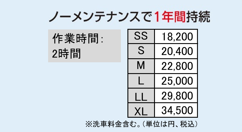 当サイトのフォームからのお問合せ、または、お電話にて「公式サイトを見た」とお伝えいただくと、下記ボディーコーティングが通常価格(キーパーラボさんの店頭価格)から20%OFFとなります(全て税込み表記)。