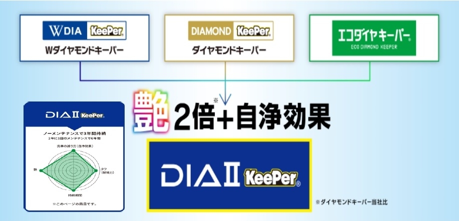 ダイヤⅡキーパーは、ダイヤモンドキーパーを全面的に改良した最新コーティング。