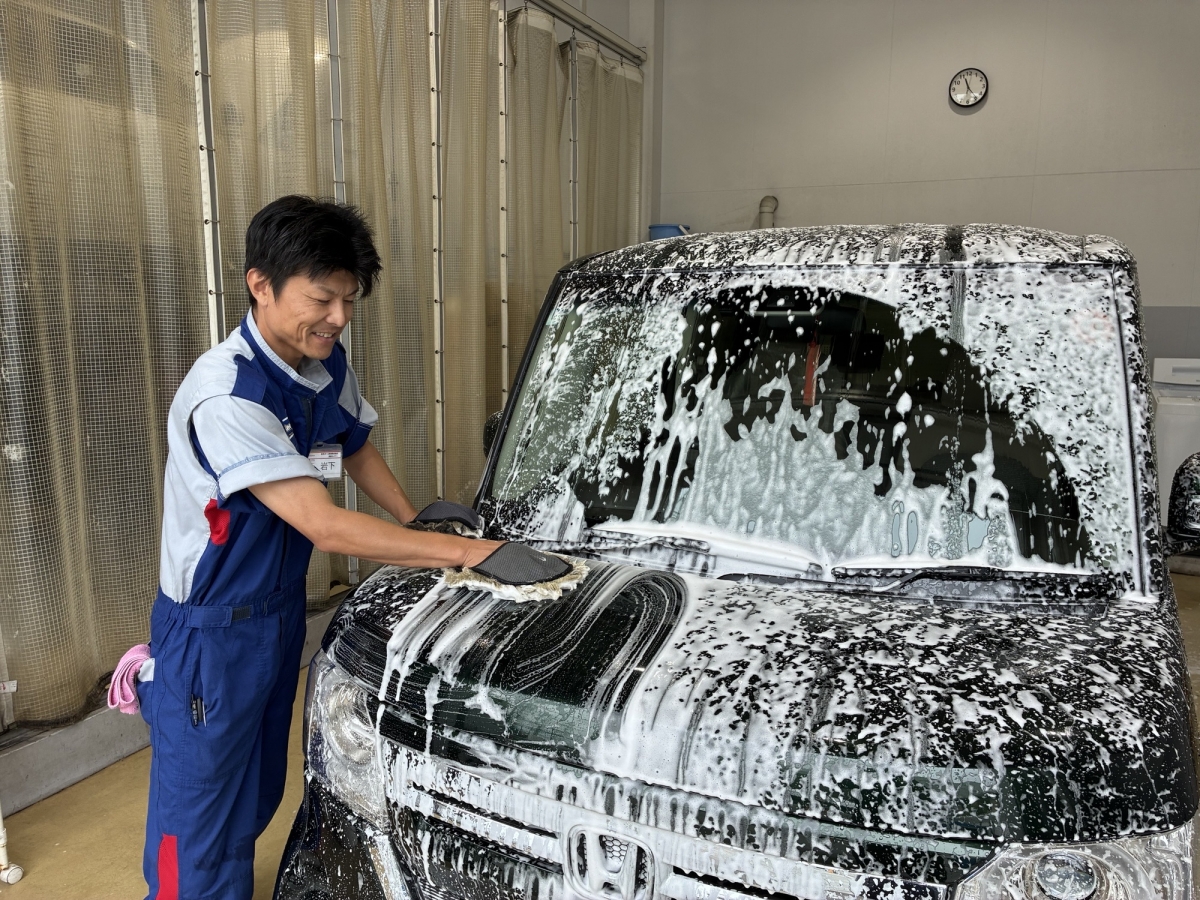 当店の手洗い洗車は不純物を取り除いたこだわりの純水を使用しています。