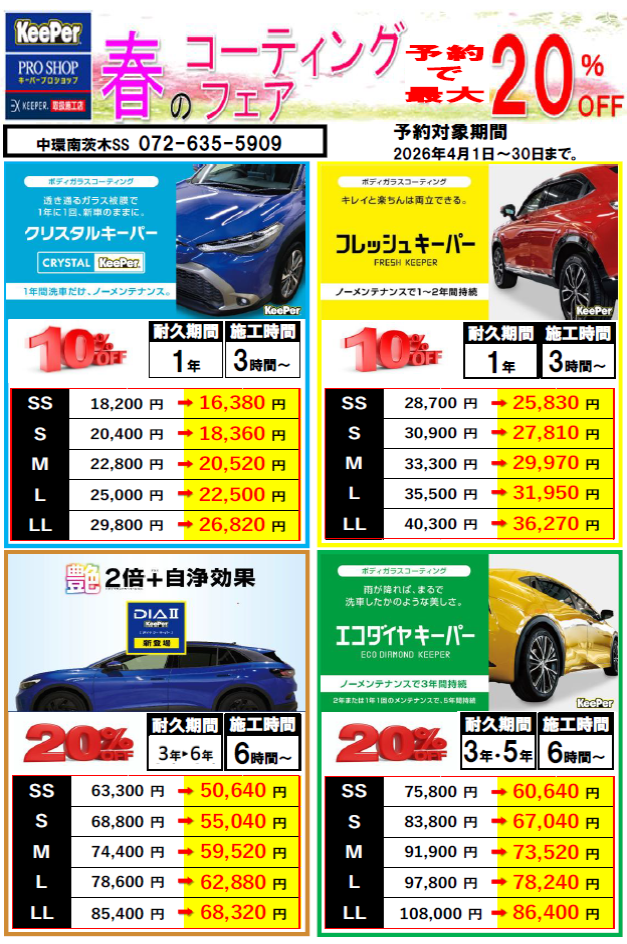 キーパーコーティングメニュー