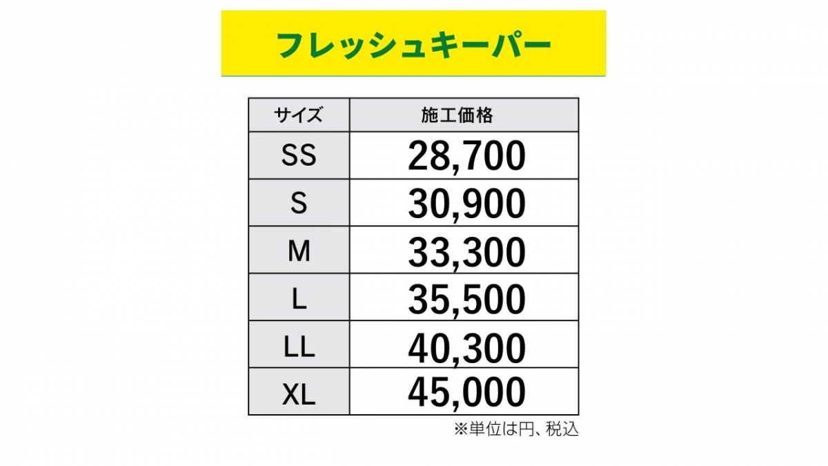 価格表をクリック(タップ)するとお車のサイズをお調べできます。