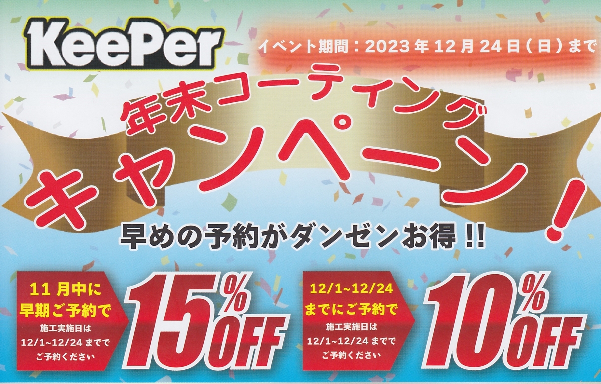 こんにちは😃キーパープロショップ八尾南所員の、髙萩です。いよいよ12月も中旬に入りました‼️お得なキーパーキャンペーンも24日迄です!そこの貴方達早目に愛車を磨いてもらいましょう✨✨✨...