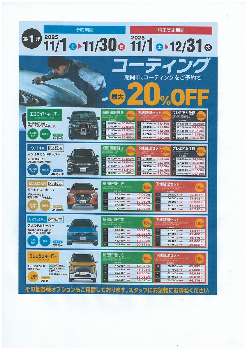 また、手洗い洗車・コーティングだけでなくオイル交換やタイヤ交換等