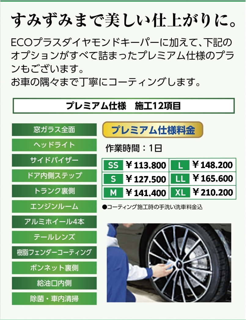 コーティング技術一級資格を持ったプロスタッフが、お客様の愛車に素晴らしい輝きを持たせ、更なる魅力を引き出します。