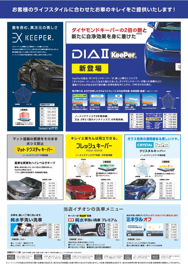 日常の洗車から、各種コーティングまで安心して施工いただけます。