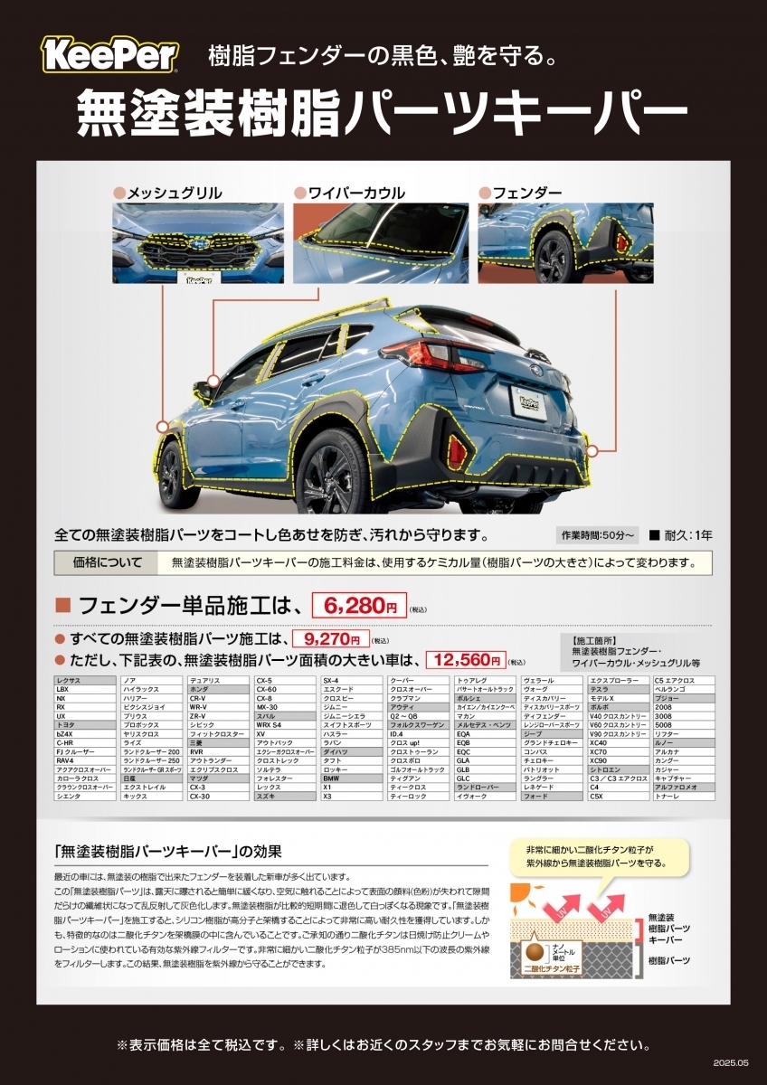 当店では、各種Keeperコーティングメニューを始め、お客様のご要望に沿ったボディーケアをご提案しております✨